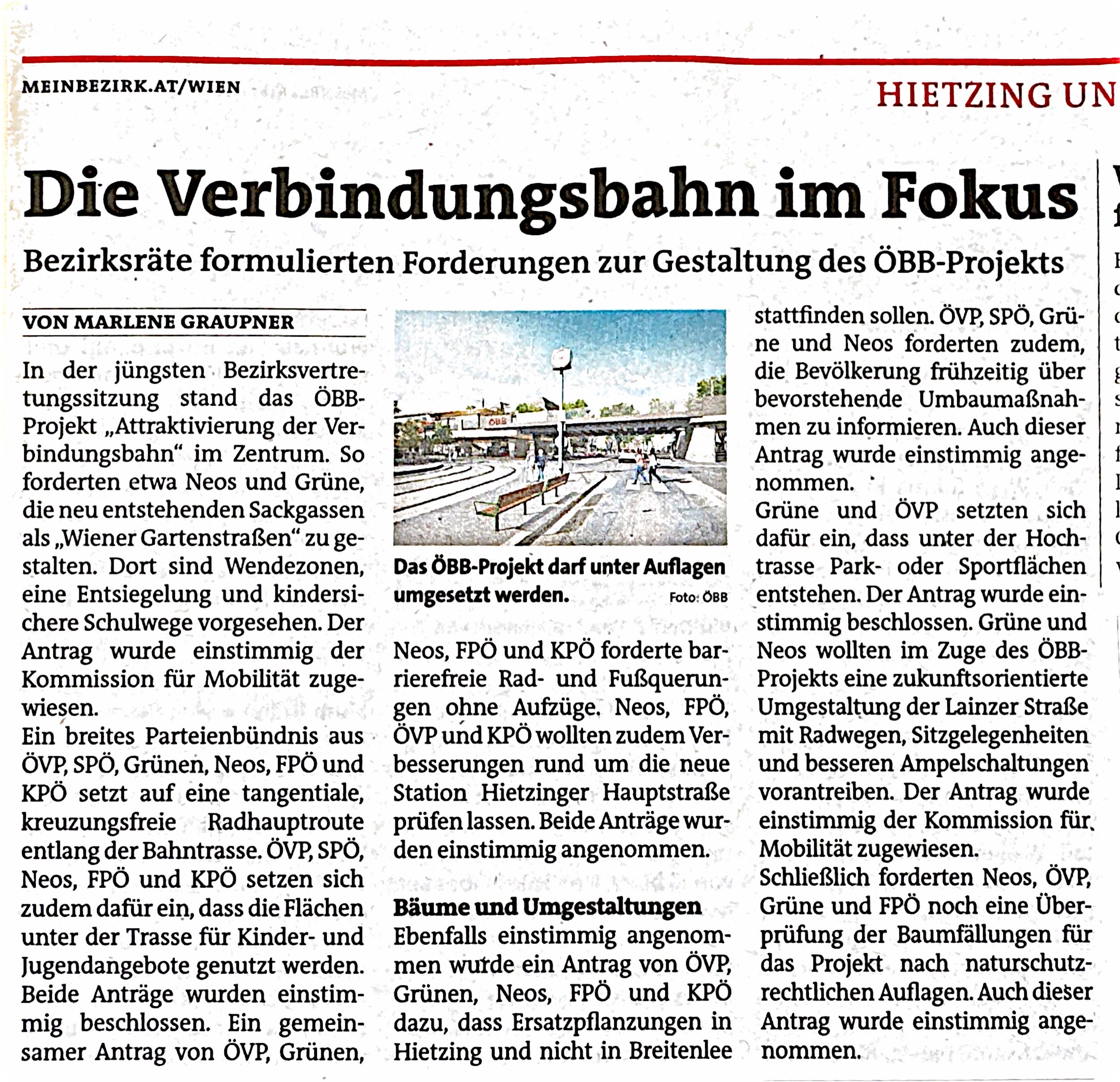 - Bezirkszeitung, 10.6.21 „Verbindungsbahn bitte anders“